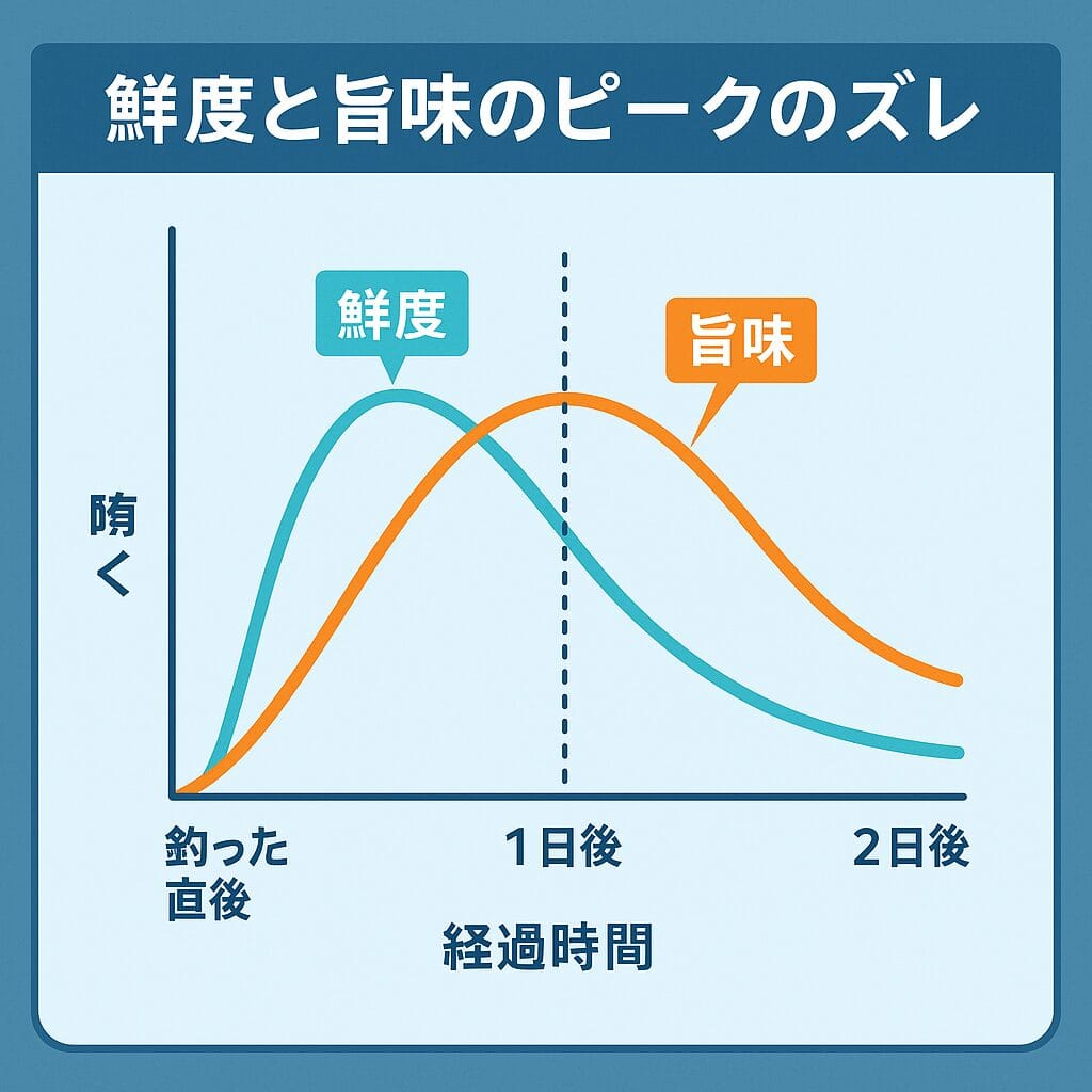 現場では、脱水を施した直後にATP由来の旨味が急激に立ち上がる “一瞬のピーク”が存在することが知られている。